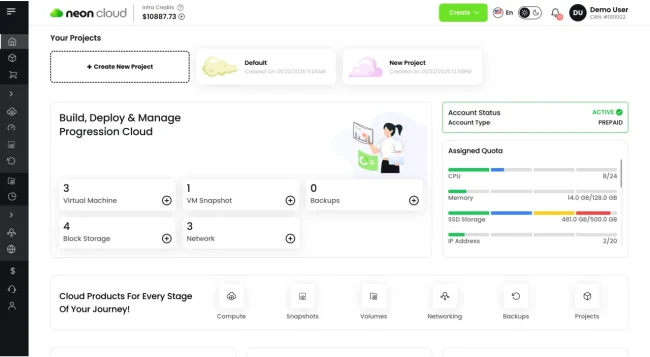 Neon Cloud is a next-generation, self-service cloud computing platform designed for developers, startups, and SMBs. As one of the best cloud hosting providers in India, Neon Cloud delivers powerful Infrastructure-as-a-Service (IaaS) solutions that are scalable, secure, and user-friendly. Our platform simplifies cloud management, empowering businesses to innovate without worrying about infrastructure. Whether you’re looking for the best cloud hosting in India or a reliable platform to build your tech stack, Neon Cloud offers a high-performance environment that combines accessibility with advanced features.